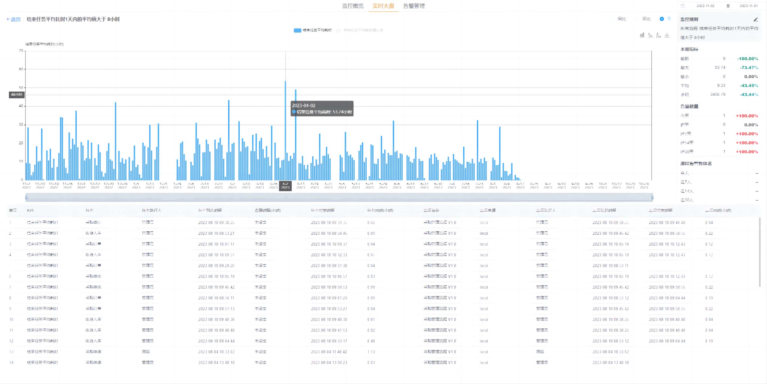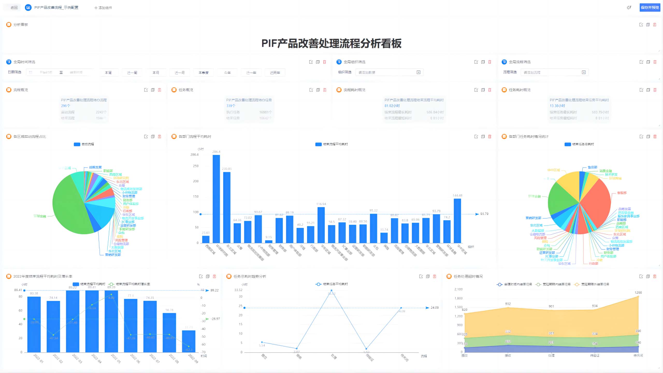 多种图表组成清晰视图呈现复杂的流程运行数据