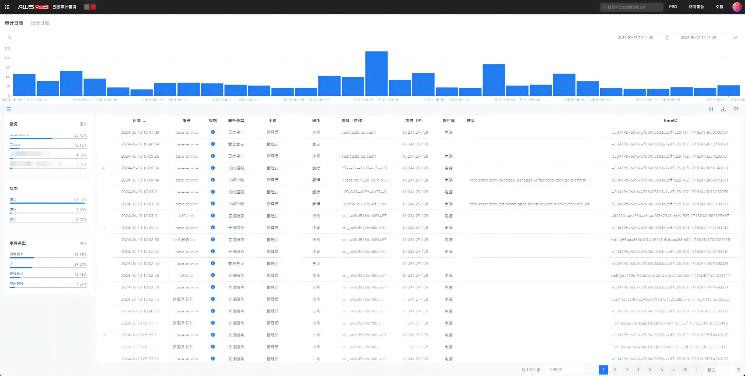 AWS iPaaS的日志审计查询能力包括,操作行为:记录关键操作,确保审计留痕; 访问控制:登录访问审查,保障系统安全; 三员审计:强大三员审计,分权治理控制。