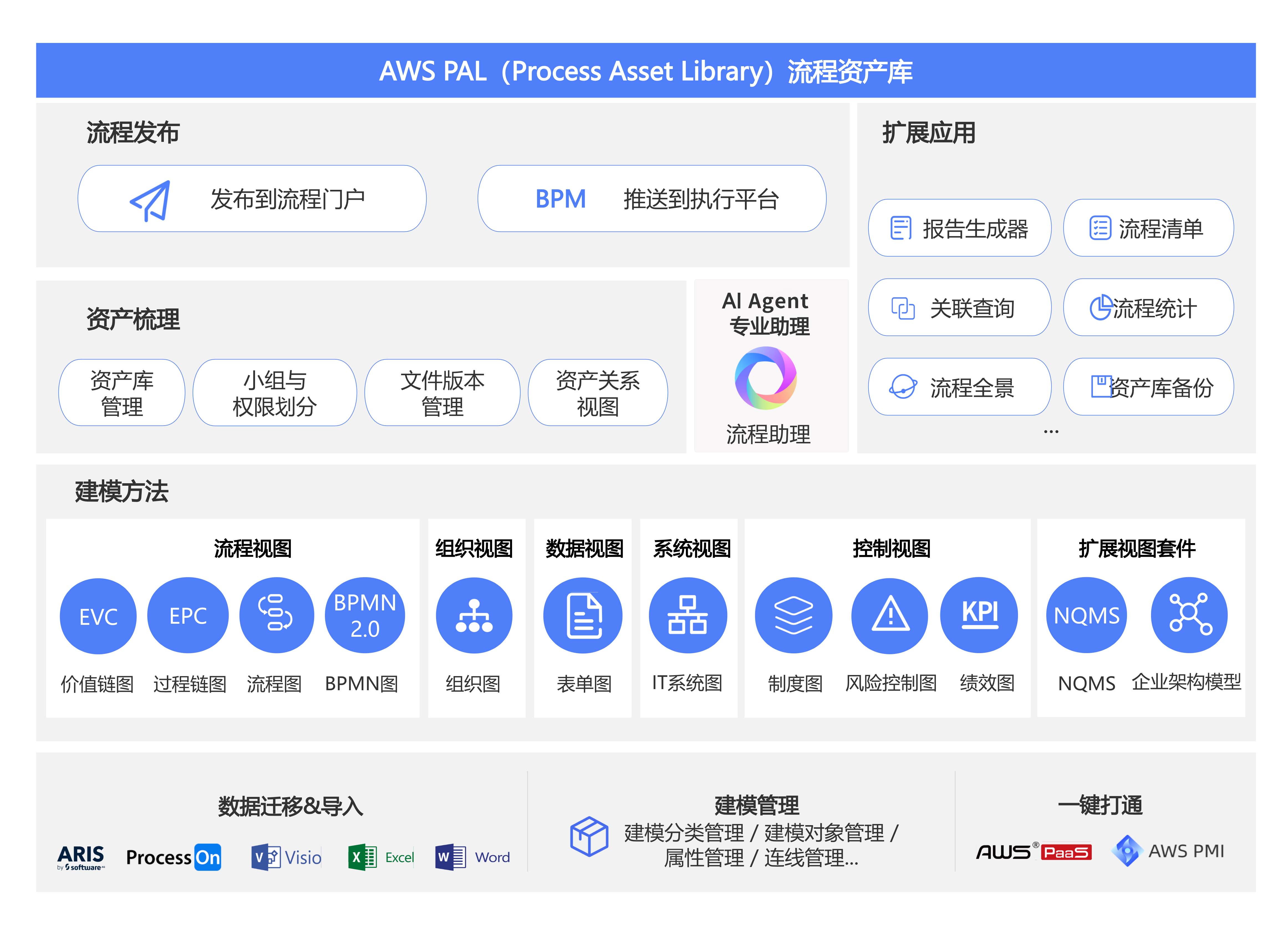提供创建流程架构体系的向导,分清业务层次、理顺业务结构,为流程管理奠定基础。易用的流程梳理工具,高效的流程发布机制,智能的流程手册报告,实现对流程资产的周期管理,让流程资产显性化、标准化。